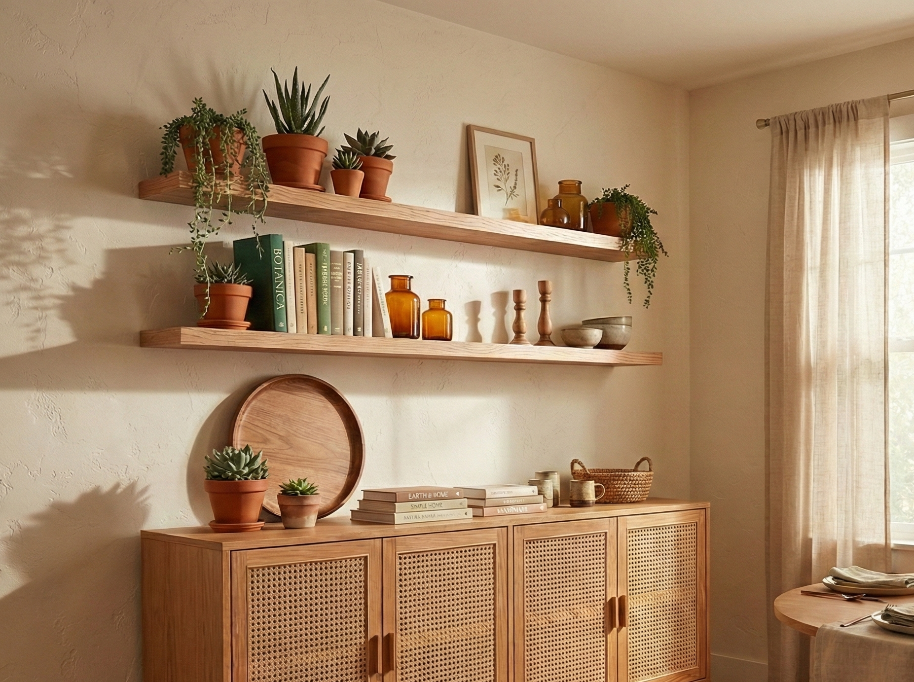 Using Floating Mahogany Shelves for Easy Seasonal Swaps